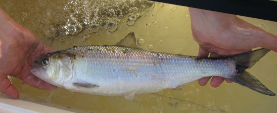 Shad look like the “perfect” fish: forked tail, tapered body, and silvery all over, with a dark spot just behind … More
